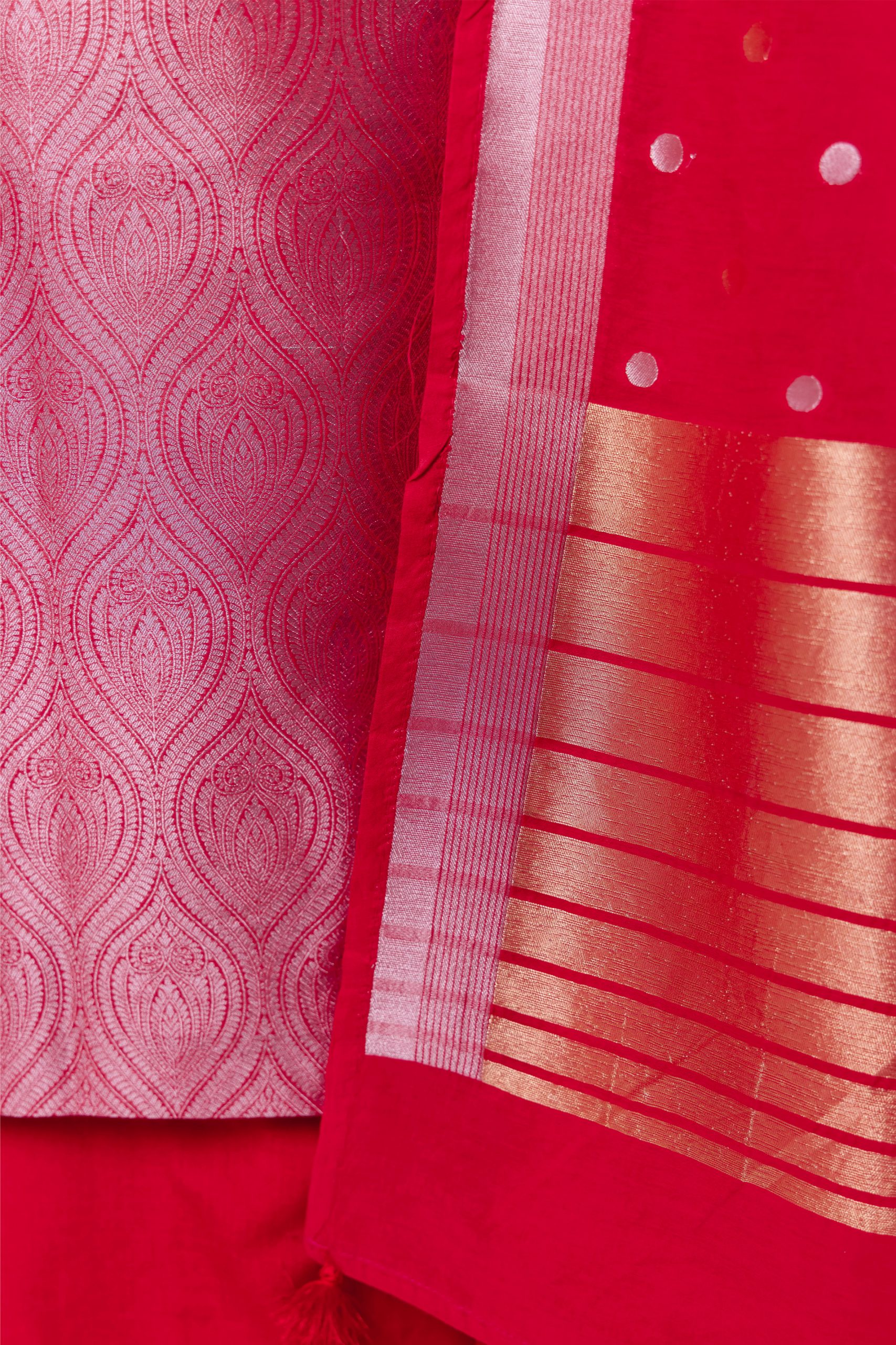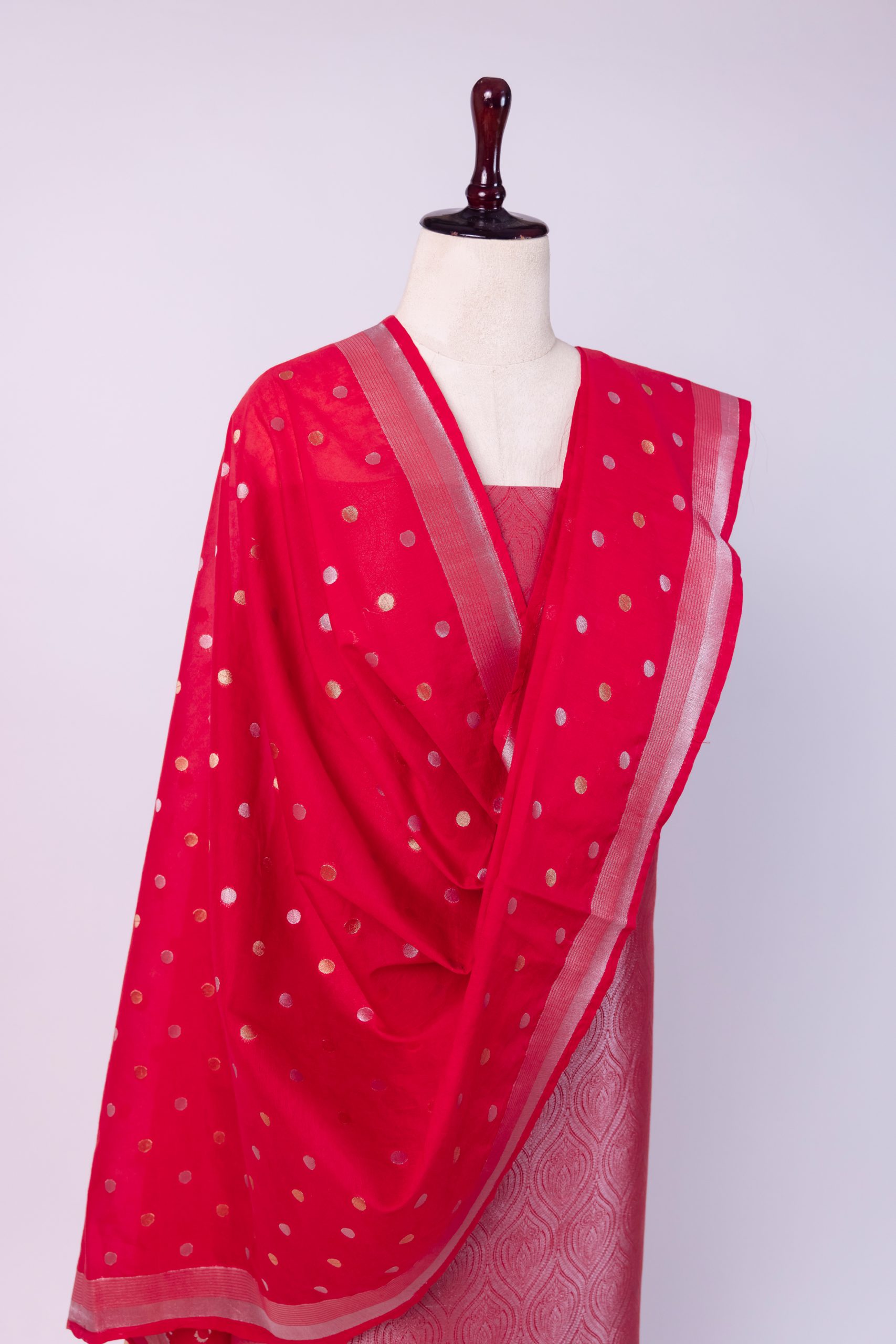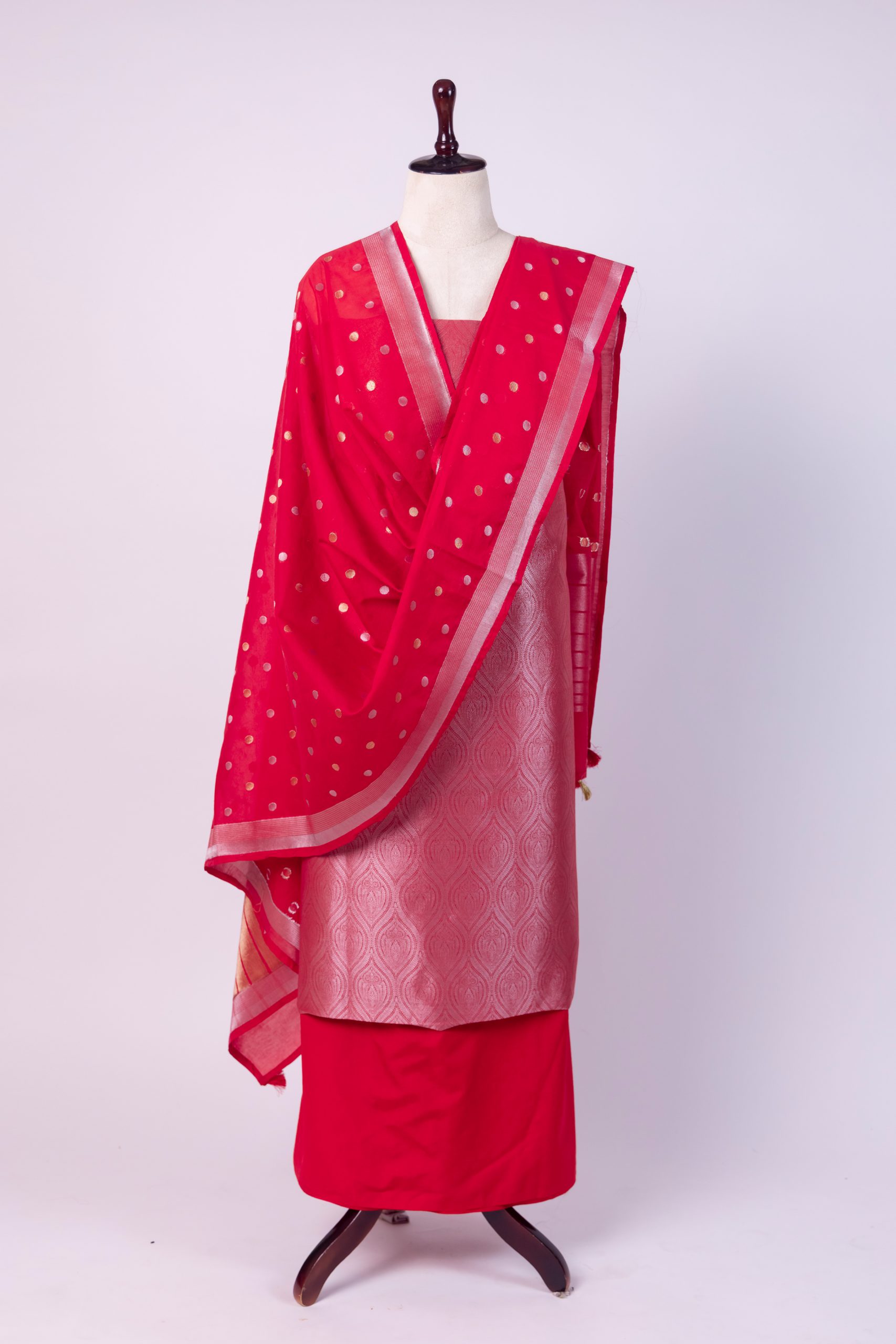 Color: Red with Silver Gold Zari Weaving